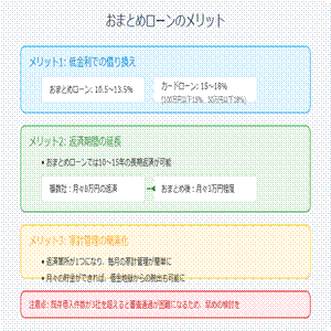 手続きの流れは、まず申込みと審査、契約後におまとめローン会社が既存の借入先に直接返済するか、契約者自身で返済する方法があります。重要なのは返済期間の設定で、月々の返済額を下げすぎると返済期間が長期化し、結果的に支払利息が増える可能性があることです。